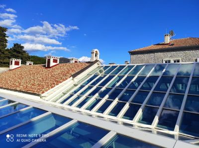 Retractable Skylight Glass Roof Systems and Retractable Awning Curtain/ Fabric under glass roof…